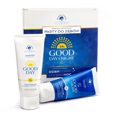 | GOOD DAY | PASTA NA DZIEŃ - Zapewnia długotrwałe uczucie świeżości z jednoczesną naturalną ochroną antybakteryjną i przeciwpróchniczą. - W delikatny sposób usuwa przebarwienia i łagodzi podrażnienia dziąseł oraz jamy ustnej. | Efekty potwierdzone w badaniach skuteczności kosmetyków. |